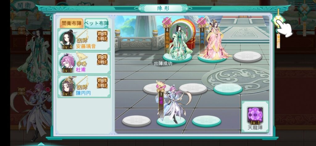戦闘前の編成で側近の陣営を整えればあとは自動で戦闘が繰り広げられます。